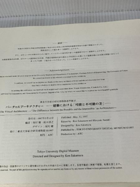 バーチャルアーキテクチャー-建築における「可能性と不可能性の差」 東京大学総合研究博物館 坂村健・鈴木博之 編