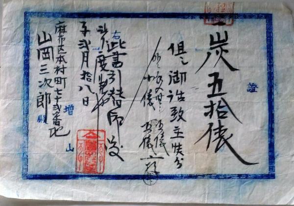 • 解説 D25122509〇領収書 炭 東京麻布区 明治時代〇和本古書古文書