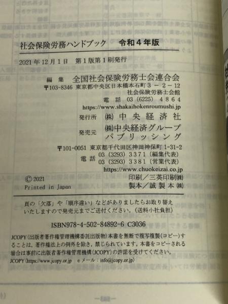 社会保険労務ハンドブック【令和4年版】 中央経済社 全国社会保険労務士会連合会