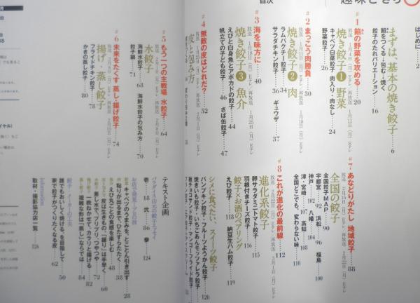まずは、基本の焼き餃子 1/餡の野菜を攻める・焼き餃子①野菜 2/まっこう肉勝負・焼き餃子②肉 3/海を味方に・焼き餃子③魚介 4/無敵の皮はどれだ?・皮と包み方 5/もう一つの主戦場・水餃子 6/未来をたくす蒸し・揚げ餃子 7/あなどりがたし地域餃子・全国の餃子 8/これが進化の最前線・進化系餃子 他