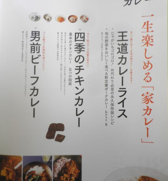 一生楽しめる「家カレー」 王道カレーライス 四季のチキンカレー 男前ビーフカレー スパイス&進化系教室 南インド式カレーライスは25分でできます! 大人気店の新しい味に出合う 低糖質カレー・レッスン 検証「おいしいカレーのつくり方」&「dancyuカレー部」の公式レシピ!