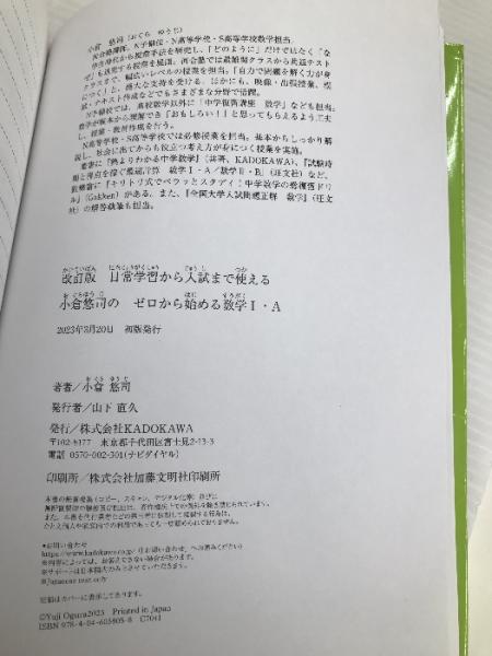 改訂版 日常学習から入試まで使える 小倉悠司の ゼロから始める数学1・A KADOKAWA 小倉 悠司
