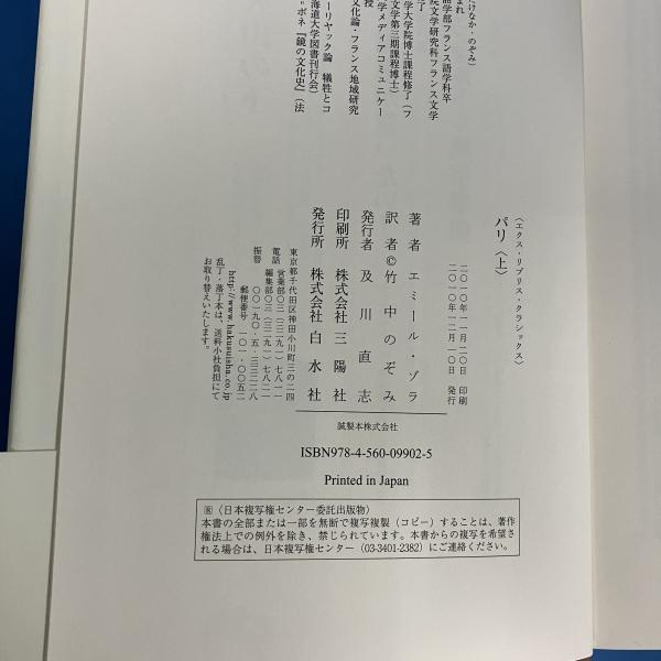 パリ 上・下巻 揃い