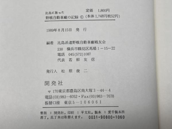 比島に散った野戦自動車廠の記録  開発社 比島派遣野戦自動車廠戦友会