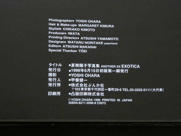 8 5 夏樹陽子写真集 ANOTHER XX EXOTICA Ohara Yoshi撮影 1996年初版