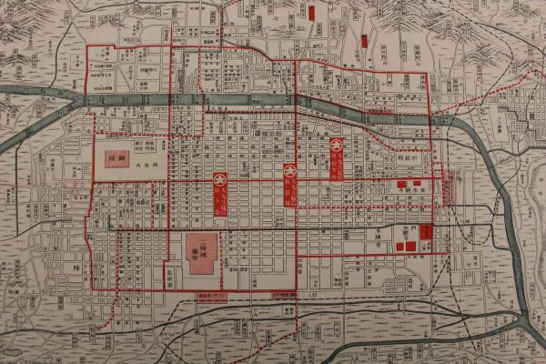 5 5 御本山御遠忌記念京都明細地図 京都松原御幸町角 大丸呉服屋 昭和初期 両面印刷 約27×38.5㎝