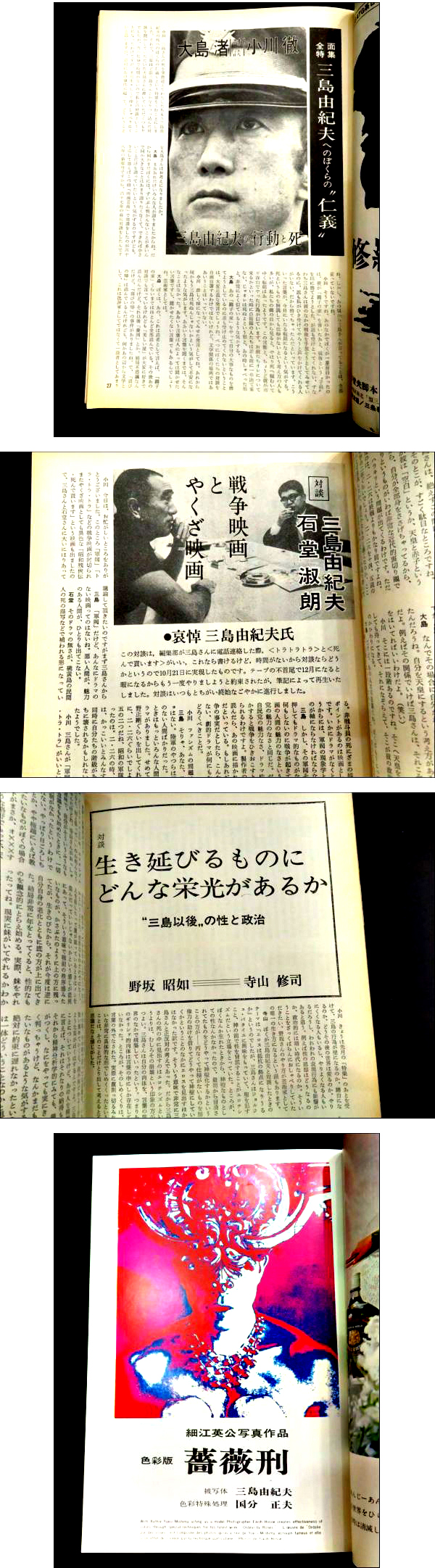 「サンデー毎日」男よ!三島由紀夫が言い遺したもの大特集 昭和45年12月20日/「週刊ポスト」特別回想記「三島由紀夫と私」丸山明宏 昭和46年1月1日
