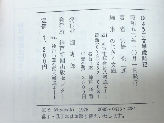 ひょうご文学歳時記 (1978年) 神戸新聞出版センター 宮崎 修二朗