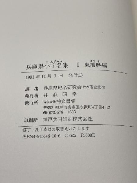 兵庫県小字名集 (1)東播磨編 兵庫県地名研究会 編、神文書院、1991