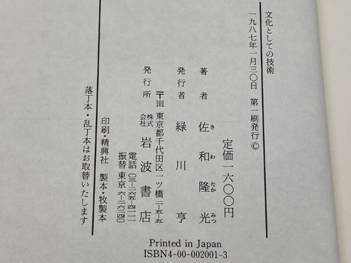 文化としての技術: ソフト化社会の政治経済学 岩波書店 佐和 隆光