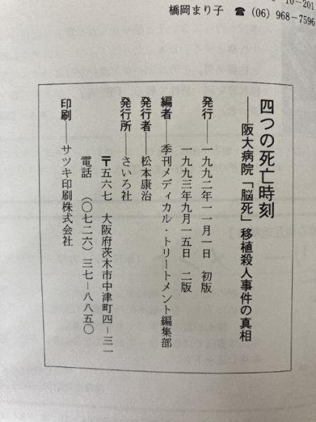 四つの死亡時刻 阪大病院「脳死」移植 殺人事件の真相 さいろ社 季刊メディカル・トリートメント