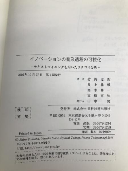 イノベーションの普及過程の可視化―テキストマイニングを用いたクチコミ分析 日科技連出版社 竹岡 志朗