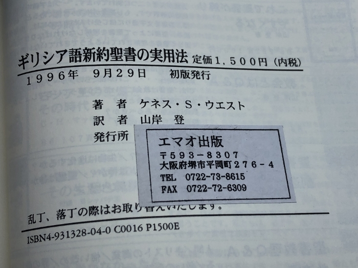 ギリシヤ語新約聖書の実用法-新約聖書の中にある霊的宝石の掘り出し方- エマオ出版 ケネス S. ウエスト