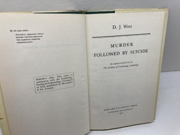 洋書 Murder followed by suicide: An inquiry carried out for the Institute of Criminology, Cambridge