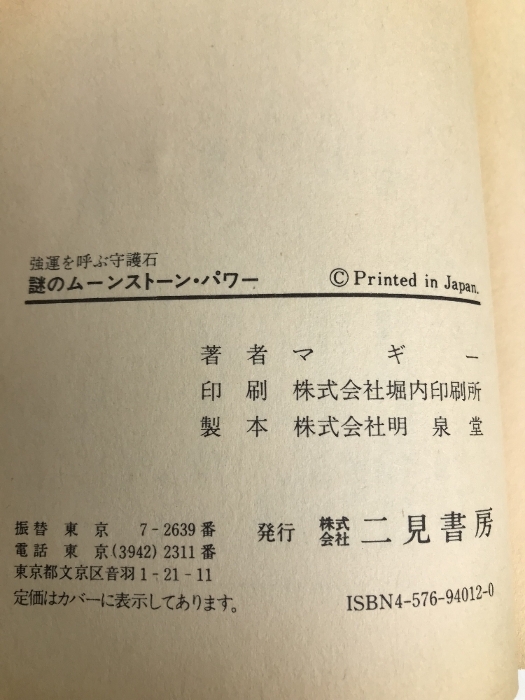 謎のムーンストーンパワー 二見書房 マギー