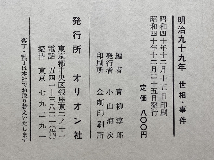 明治九十九年―世相・事件 (1966年) オリオン社 青柳 淳郎