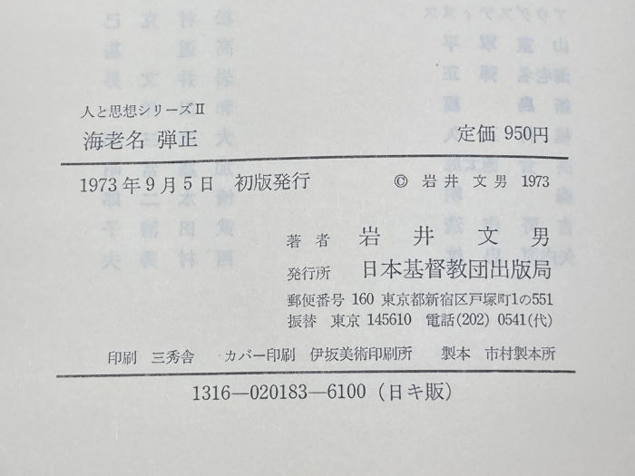 海老名弾正 (1973年) (人と思想シリーズ〈第2期〉) 日本基督教団出版局 岩井 文男