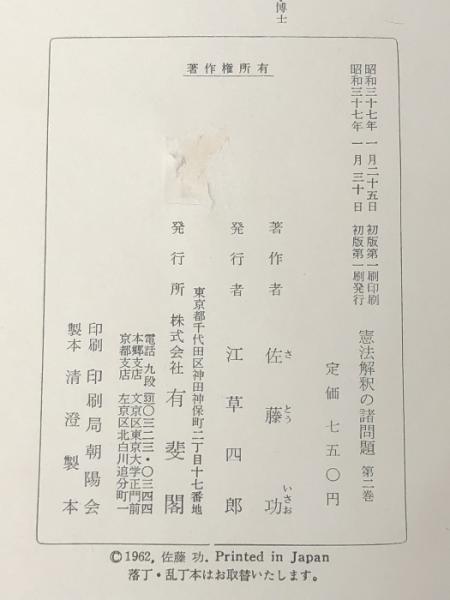 憲法解釈の諸問題 第2巻  有斐閣 佐藤 功