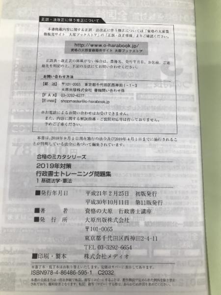 2019年対策 行政書士 トレーニング問題集 1基礎法学・憲法 (合格のミカタシリーズ) 大原出版 資格の大原 行政書士講座