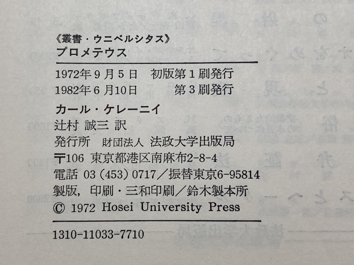 プロメテウス―ギリシア人の解した人間存在 (1972年) (叢書・ウニベルシタス) カール・ケレーニィ