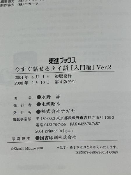 ※CDVer.1欠品。今すぐ話せるタイ語 入門編 Ver.2: 聞いて話して覚える (東進ブックス OralCommunicationTrainingSer) ナガセ 水野 潔