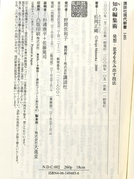 知の編集術 (講談社現代新書 1485) 講談社 松岡 正剛