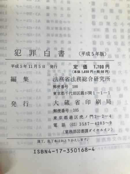 犯罪白書 平成5年版 大蔵省印刷局 法務省法務総合研究所