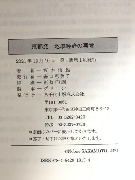 京都発 地域経済の再考 八千代出版 坂本 信雄