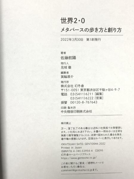 世界2.0 メタバースの歩き方と創り方 幻冬舎 佐藤 航陽