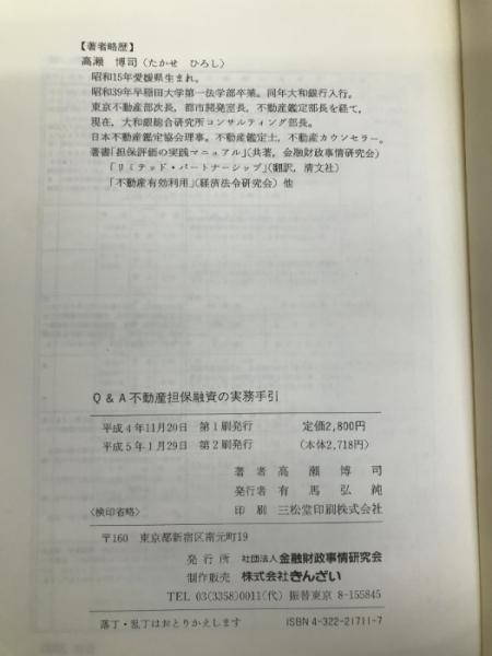 Q&A不動産担保融資の実務手引: 融資判断マニュアル 金融財政事情研究会 高瀬 博司