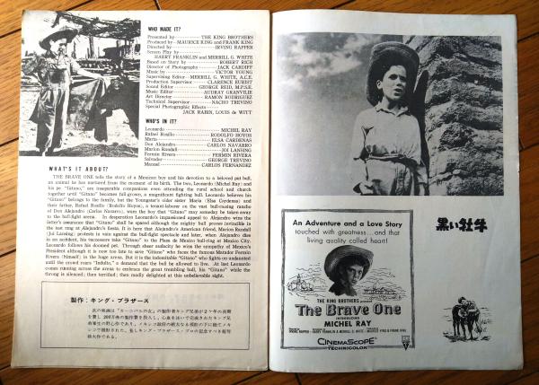 【映画「黒い牡牛(マイケル・レイ主演/アービング・ラッパー監督)」パンフレット(B5サイズ・全12ページ)】昭和31年