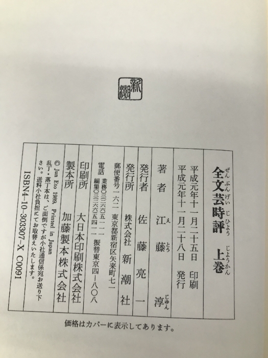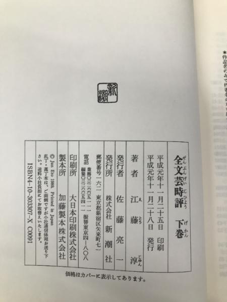 全文芸時評(二冊セット) 新潮社 江藤 淳