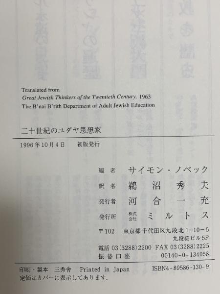 二十世紀のユダヤ思想家 ミルトス サイモン ノベック