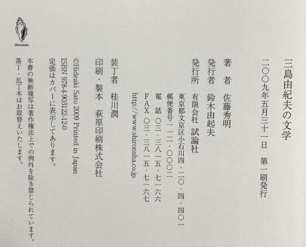 三島由紀夫の文学 試論社 佐藤 秀明 2009年5月31日第1刷発行