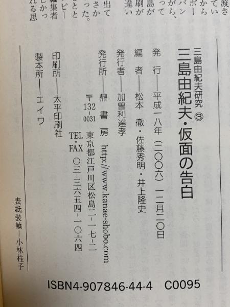 三島由紀夫・仮面の告白 (三島由紀夫研究3) 鼎書房 松本徹 2006年12月20日発行