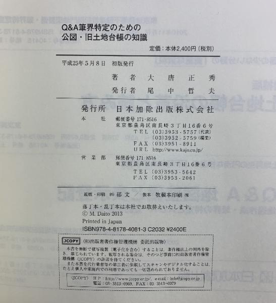 Q&A筆界特定のための 公図・旧土地台帳の知識 日本加除出版 大唐 正秀