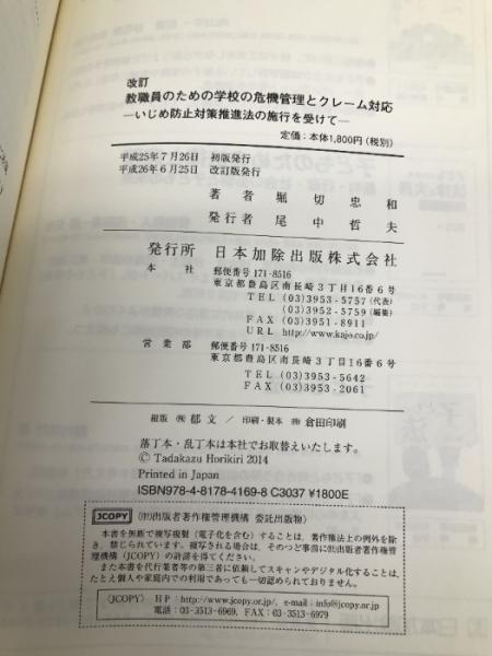 改訂 教職員のための学校の危機管理とクレーム対応 日本加除出版 堀切 忠和
