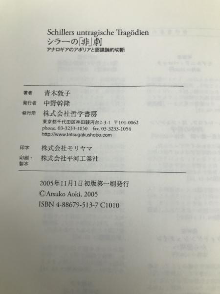 シラーの「非」劇―アナロギアのアポリアと認識論的切断 哲学書房 青木 敦子
