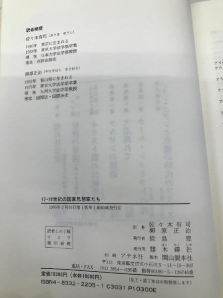 十七・十八世紀の国家思想家たち 木鐸社
