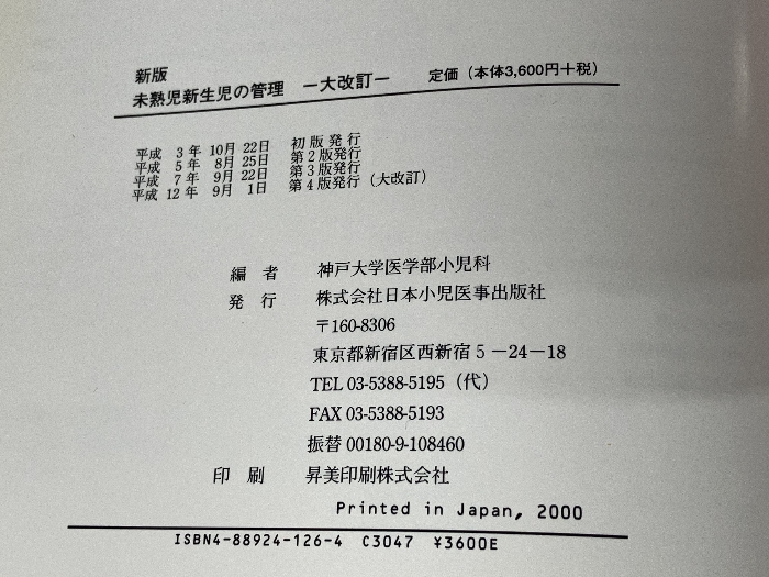 未熟児新生児の管理 日本小児医事出版社 神戸大学医学部小児科