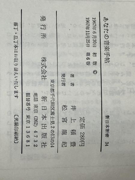 あなたの音楽手帖 (1967年) (新日本新書) 新日本出版社 井上 頼豊