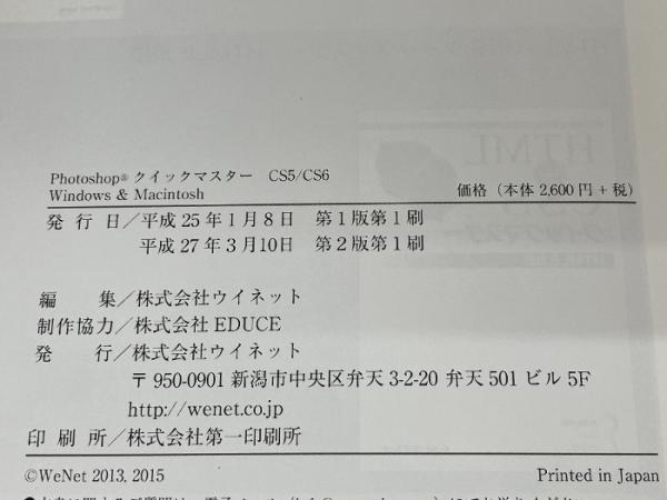 第2版 Photoshop クイックマスター CS5 / CS6 Windows&Macintosh ウイネット ウイネット ウイネット