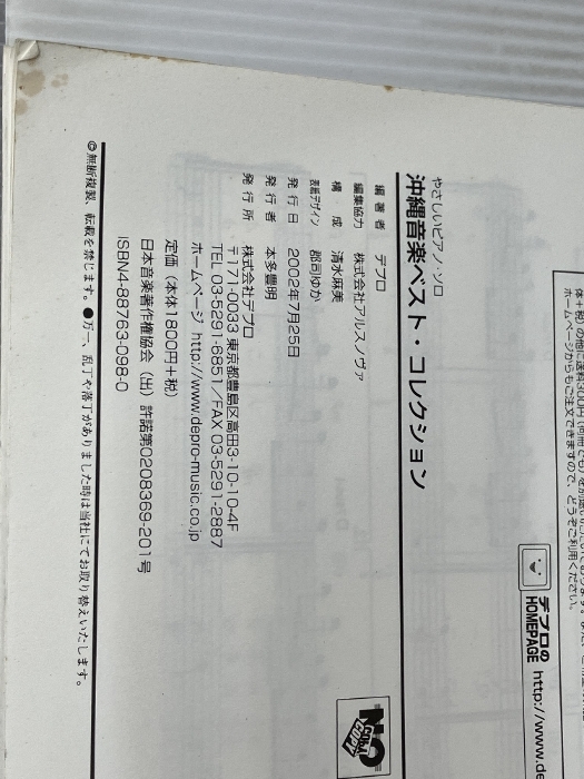 沖縄音楽ベスト・コレクション (やさしいピアノ・ソロ) デプロ THE BOOM