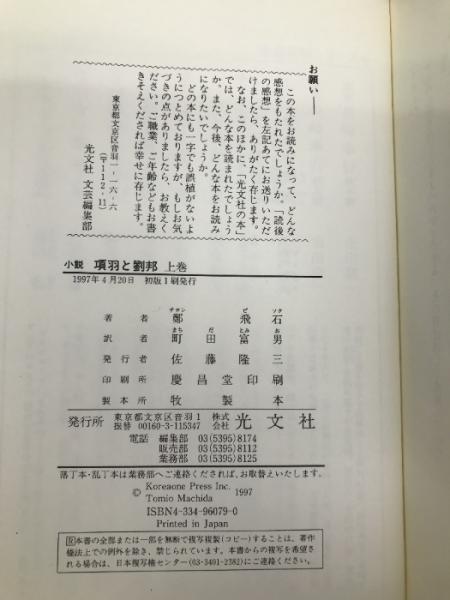 小説項羽と劉邦 上巻 光文社 鄭 飛石