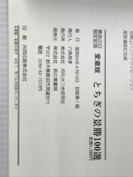とちぎの景勝100選 栃の葉書房 山口 富士男