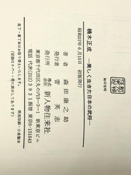 楠木正成―美しく生きた日本の武将 (1982年) 新人物往来社 森田 康之助