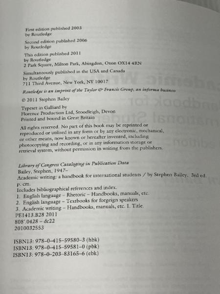 Academic Writing: A Handbook for International Students Routledge Bailey, Stephen