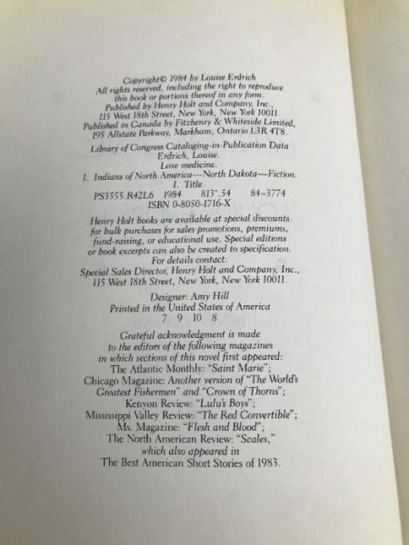 Love Medicine: A Novel Henry Holt & Co Erdrich, Louise