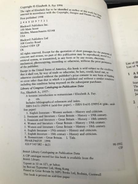 Feminist Introduction to Romanticism Wiley-Blackwell Fay, Elizabeth A.