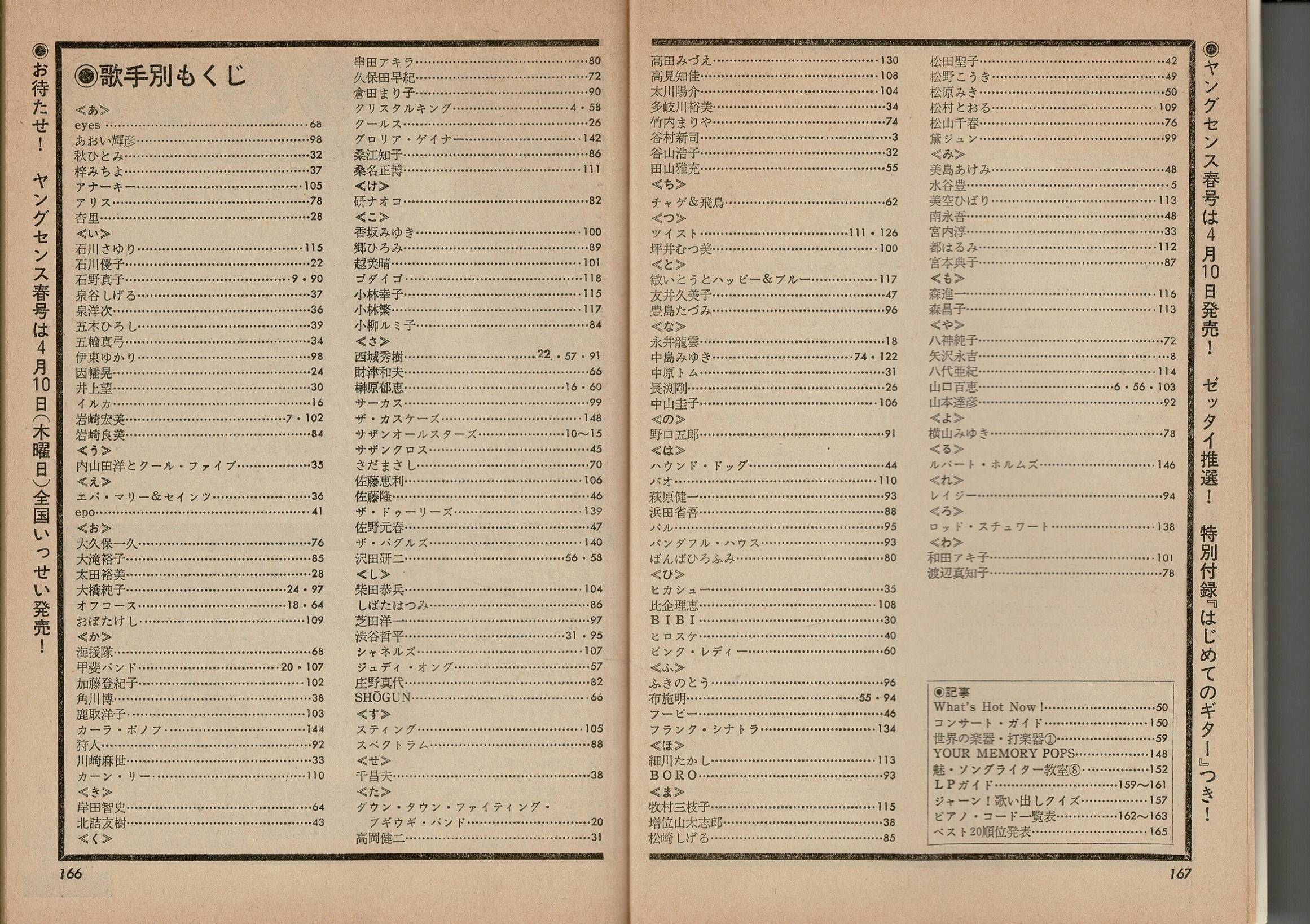 ヤング・ソング(YOUNG SONG) 明星1980年5月号付録 SAS最新LPオール・ピース大特集